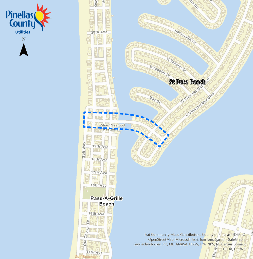 Pinellas County is planning to replace an aging and deteriorating 12-inch cast iron potable water pipe crossing that is currently laid on the seabed. This pipeline serves as a critical water main supply to the Vina Del Mar Neighborhood. The replacement pipe will be a 12-inch Fusible PVC or high-density polyethylene (HDPE) pipe installed via directional drilling. This replacement project aims to prevent potential pipe breaks and extend the service life of the pipeline.