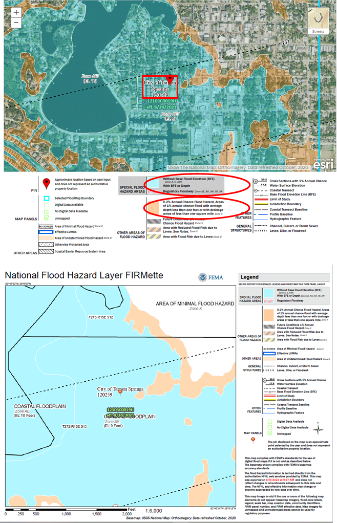 Per the effective Flood insurance Rate Map (FIRM) Panel Number 12103C0019H dated 8/24/2021 (see below), the project boundary to include remove and the replacement of the gymnasium floor. The map shows the entire site is in the 100-year floodplain (blue shaded Zone AE).